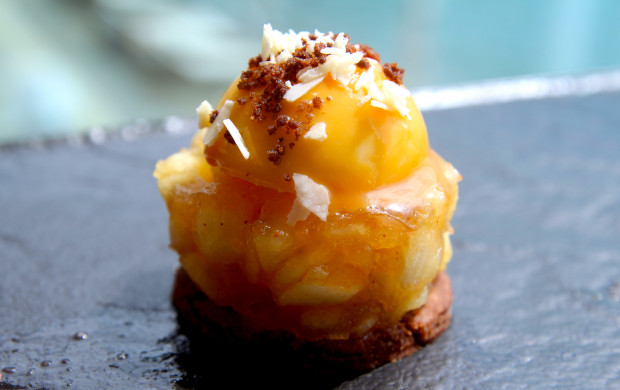 Яблоки оттеняют насыщенный вкус шоколада и сладость ванильного пудинга...