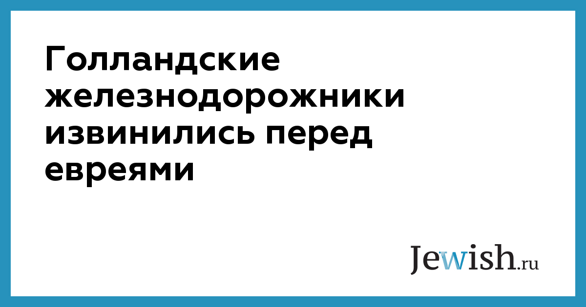 Через шестьдесят два года после того, как с одной из железнодорожных станций в окрестностях Амстердама отправился последний состав с депортированными евреями, голландская железнодорожная компания впервые принесла официальные извинения за свое участие в депортации нескольких тысяч евреев из Нидерландов в нацистские концлагеря в годы Второй мировой войны. Как сообщает агентство Ynet, это произошло вчера.
