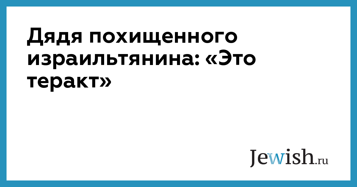 Дядя похищенного израильтянина: «Это теракт»