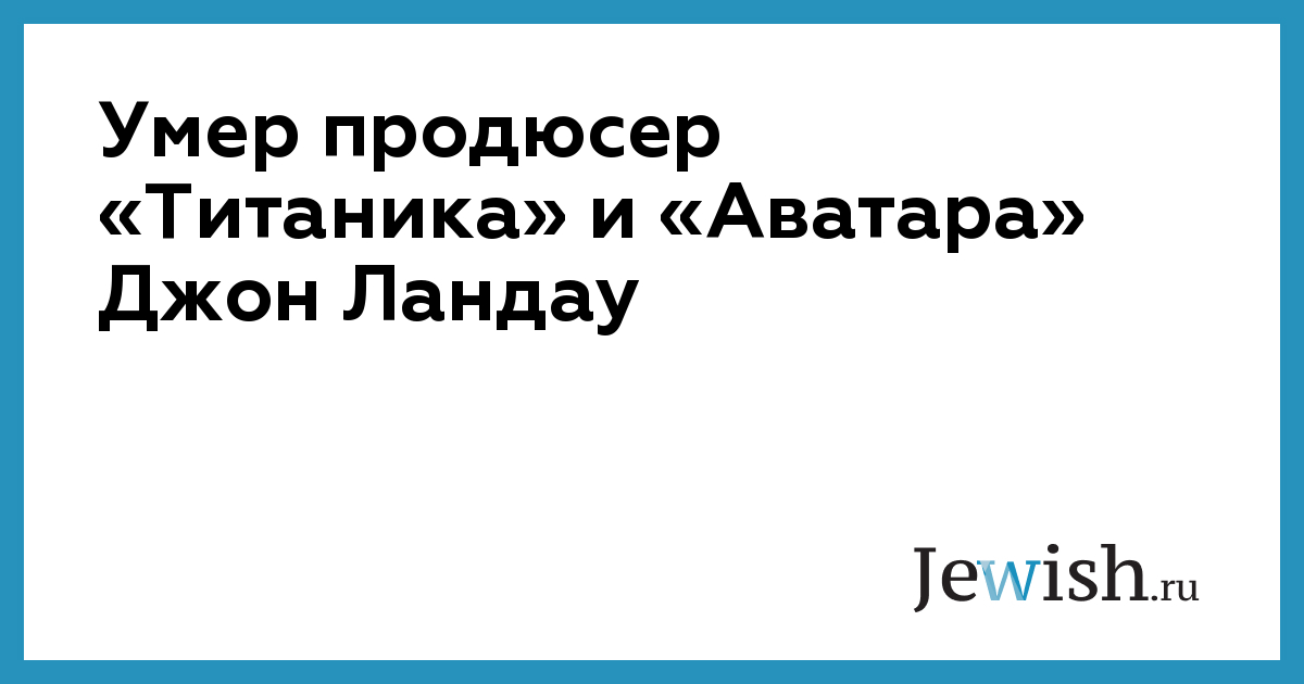 В возрасте 63 лет скончался продюсер Джон Ландау, лауреат премии «Оскар» за фильм «Титаник», партнер режиссера Джеймса Кэмерона. «Джон был провидцем, чей необыкновенный талант и страсть воплотили на большом экране одни из самых незабываемых историй. Его выдающийся вклад в развитие киноиндустрии оставил неизгладимый след и его будет очень не хватать», — цитирует слова соболезнования от сопредседателя Disney Entertainment Алана Бергмана издание Associated Press.