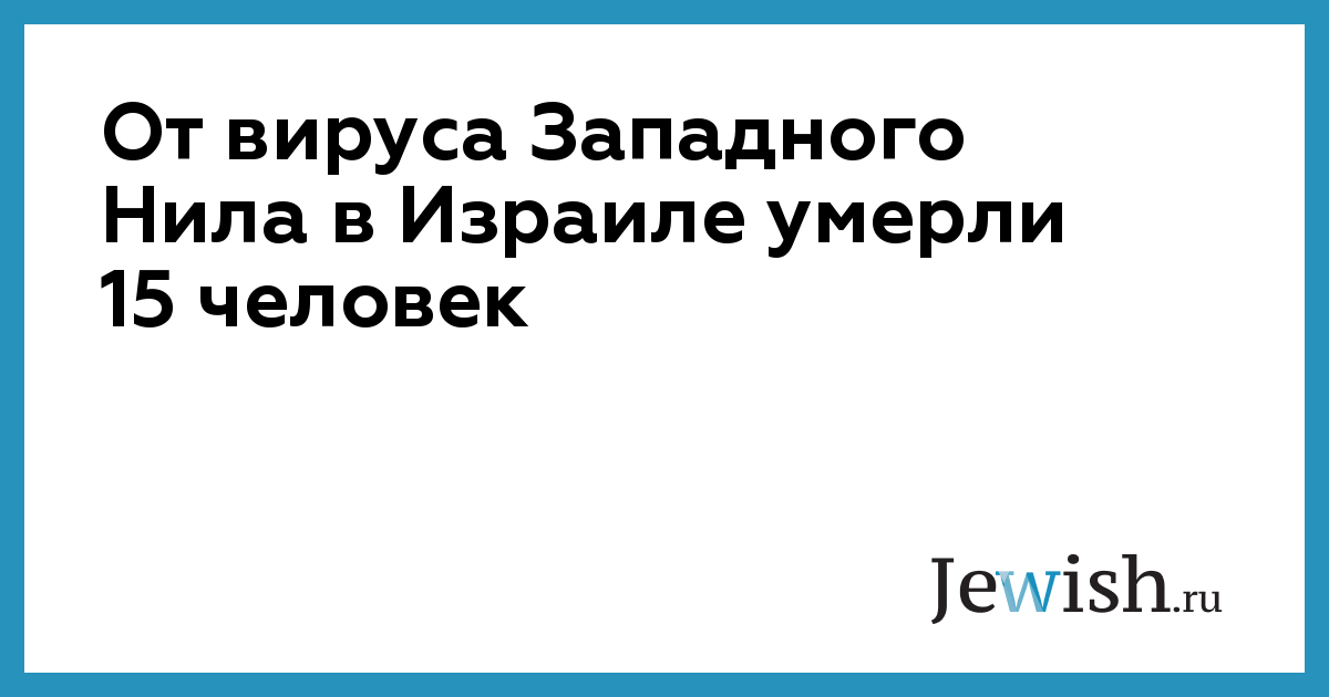 Число заболевших с начала мая лихорадкой Западного Нила в Израиле возросло до 299 человек, 15 пациентов с этим диагнозом умерли, еще двое находятся в критическом состоянии. Об этом сообщает The Times of Israel со ссылкой на Министерство здравоохранения страны. По состоянию на 28 июня в Израиле был зафиксирован 81 случай заболевания вирусом, включая 7 с летальным исходом.