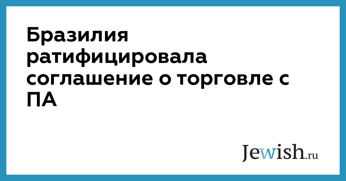 МИД Бразилии объявил о ратификации соглашения о свободной торговле с «государством Палестина», подписанного более десяти лет назад. Об этом сообщает Reuters.