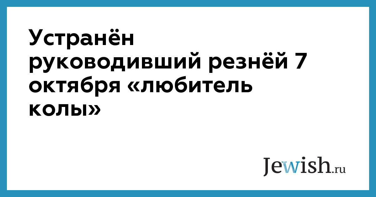 Устранён руководивший резнёй 7 октября «любитель колы»