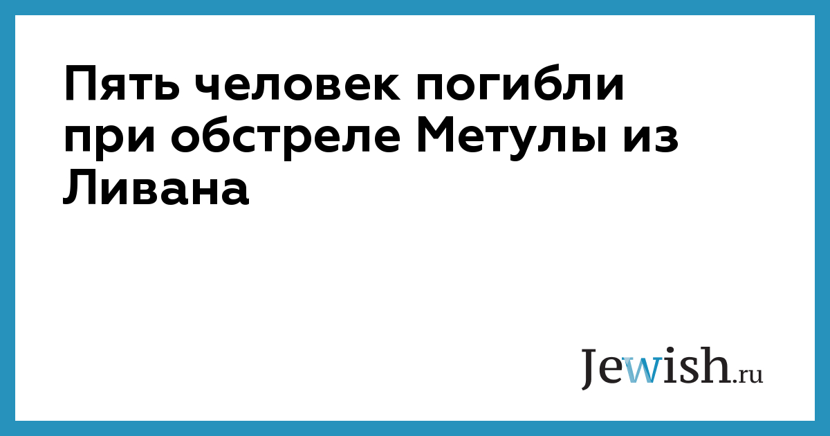 Пять человек погибли, еще один находится в критическом состоянии в результате обстрела террористами «Хезболлы» района Метулы, сообщает The Times of Israel. По предварительной информации ракета попала по сельхозугодьям, где работали погибшие. Четверо из них были иностранными рабочими.