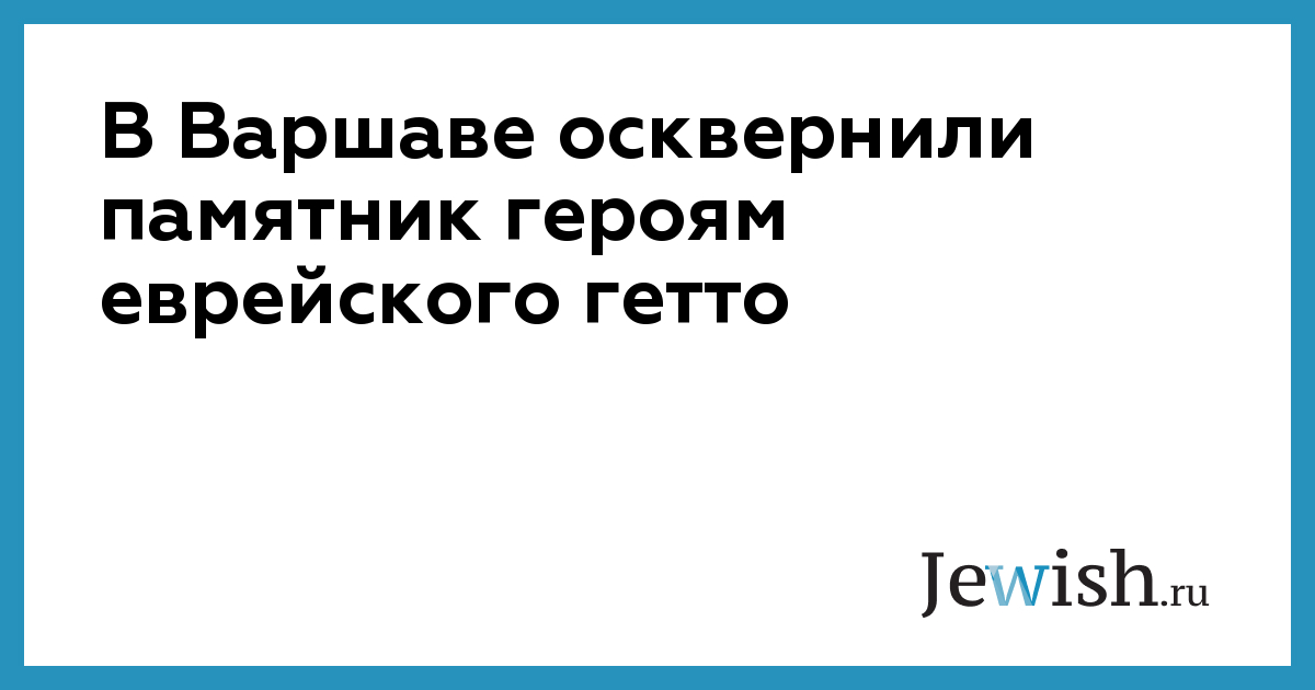 В минувшую пятницу неизвестные облили краской мемориал героям Варшавского гетто, который установлен на месте первого военного столкновения еврейских ополченцев с нацистами в ходе восстания в гетто в 1943 году. Об этом сообщает РИА «Новости».