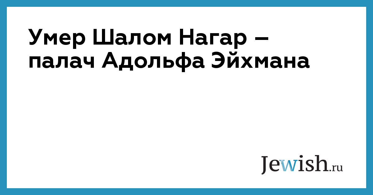В Израиле в возрасте 86 лет умер Шалом Нагар, казнивший в 1962 году нацистского военного преступника Адольфа Эйхмана, одного из «архитекторов Холокоста». Об этом сообщает издание The Jerusalem Post.