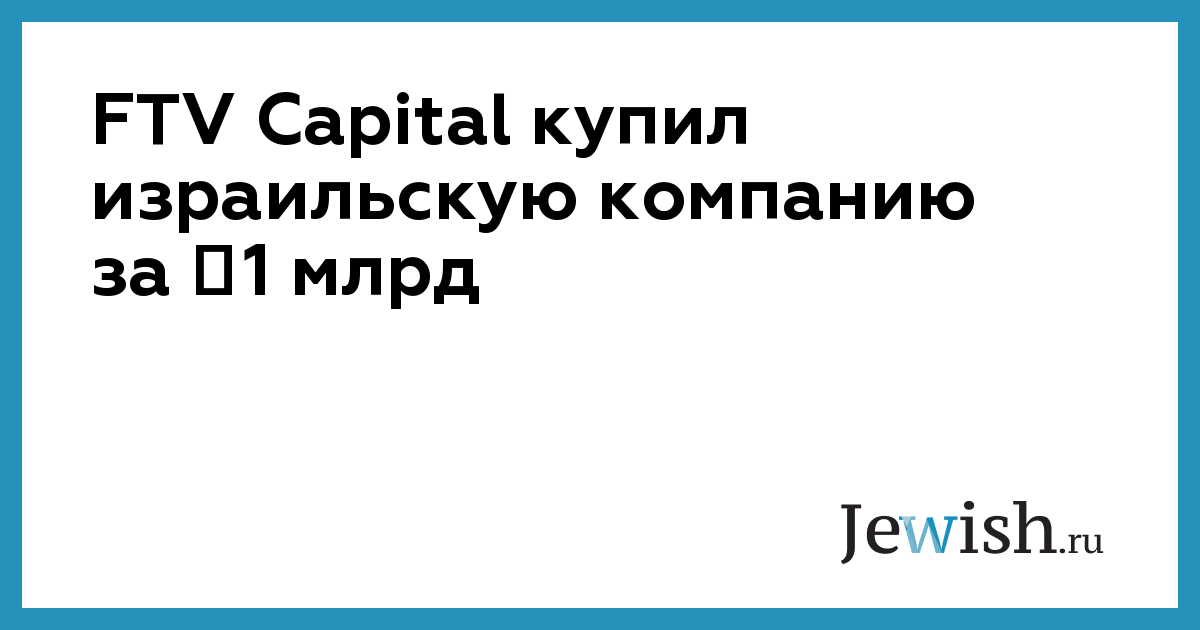 FTV Capital купил израильскую компанию за ₪1 млрд