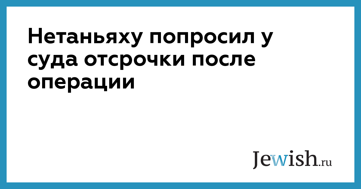 Премьер-министр Биньямин Нетаньяху обратился в суд с ходатайством об отсрочке дачи показаний по уголовному делу на две недели. Причиной указана перенесенная им в начале недели операция по удалению простаты, сообщает The Times of Israel со ссылкой на письмо, отправленное адвокатом премьера в окружной суд Иерусалима.