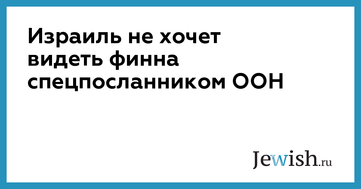 Израиль не хочет видеть финна спецпосланником ООН