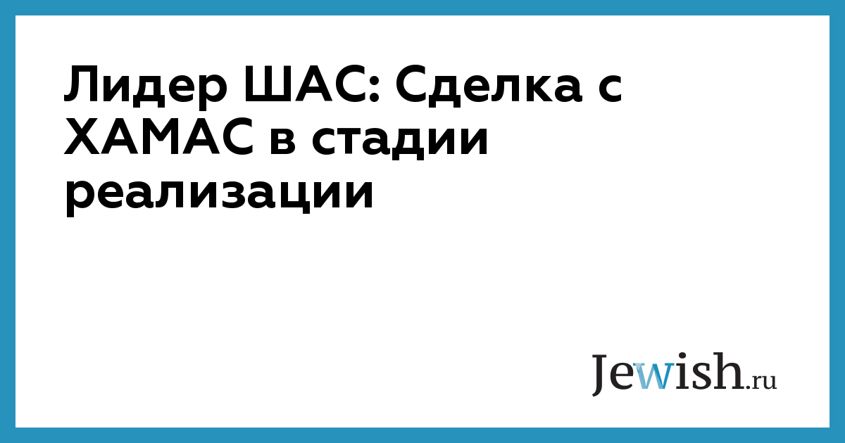 Лидер ШАС: Сделка с ХАМАС в стадии реализации
