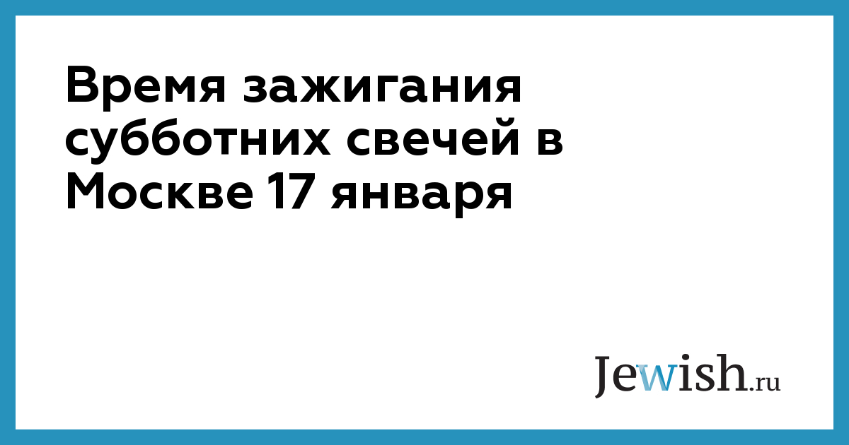 Время зажигания субботних свечей в Москве 17 января