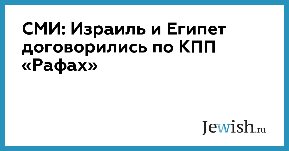 СМИ: Израиль и Египет договорились по КПП «Рафах»