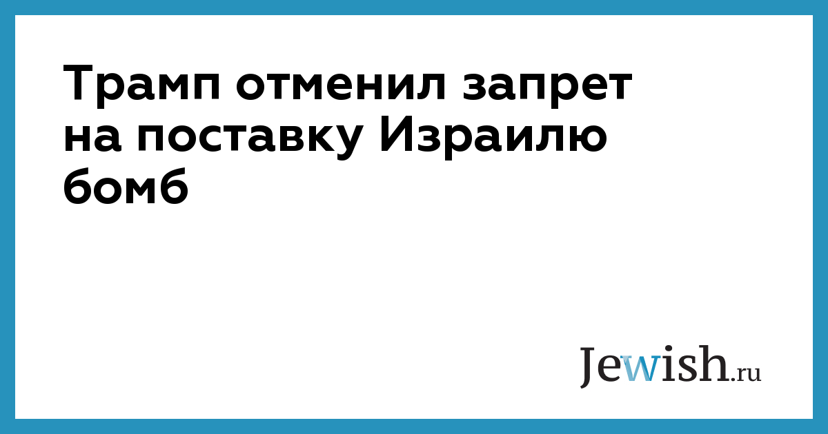 Трамп объяснил, что поручил снять запрет по той простой причине, что Израиль купил у Штатов эти бомбы. «Они их получат. Они за них заплатили и ждали поставки очень долго», – цитирует президента Reuters.