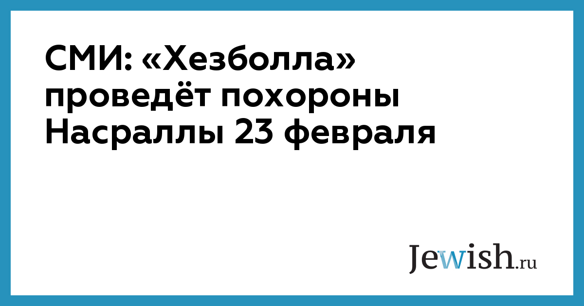 Террористическая группировка «Хезболла» намерена провести 23 февраля публичные похороны своего бывшего генерального секретаря Хасана Насраллы, который был ликвидирован в сентябре прошлого года в результате израильского авиаудара по подземному бункеру группировки. Об этом сообщает The Jerusalem Post со ссылкой на новостное агентство Al-Hadath.