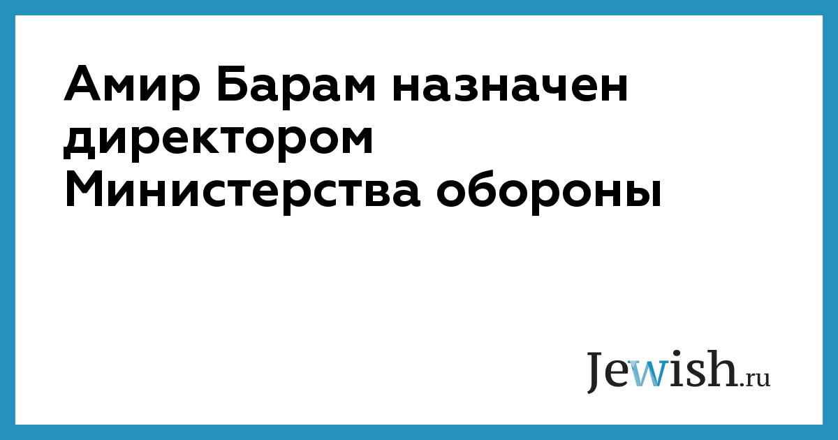 Амир Барам заменит исполняющего обязанности генерального директора Министерства обороны Итамара Графа, который занял эту должность несколько недель назад, после того как бывший директор, генерал-майор Эяль Замир, был назначен новым начальником Генерального штаба Армии обороны Израиля.