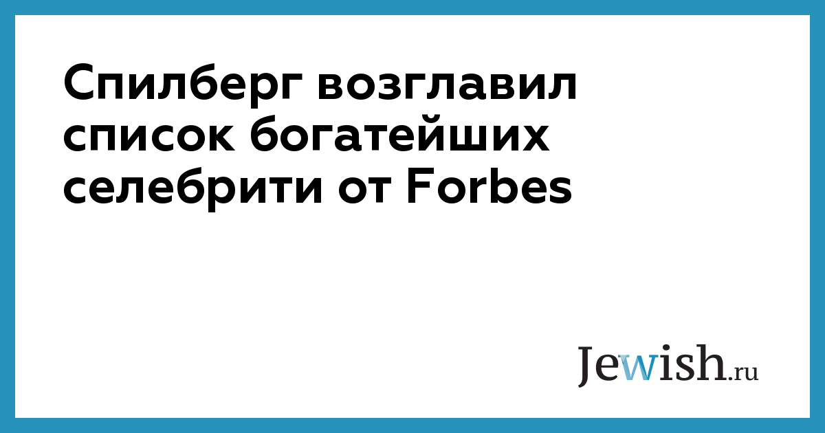 Оскароносный режиссер Стивен Спилберг, снявший целый ряд культовых фильмов, включая «Челюсти», «Инопланетянина», «Индиану Джонса» и «Парк Юрского периода», возглавил список богатейших знаменитостей мира по версии журнала Forbes. Его состояние оценивается в $5,3 млрд.
