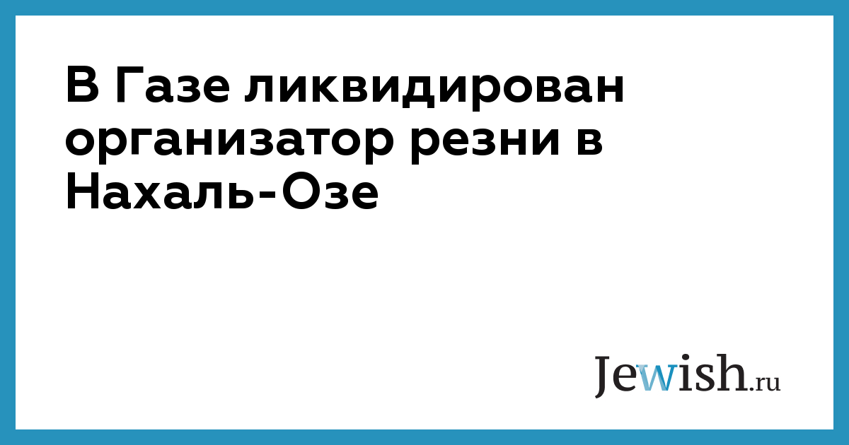 В Газе ликвидирован организатор резни в Нахаль-Озе