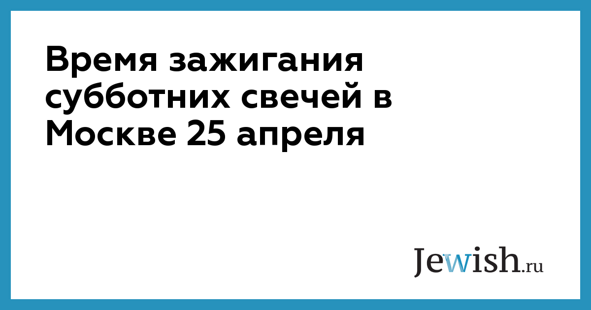 Время зажигания субботних свечей в Москве 25 апреля