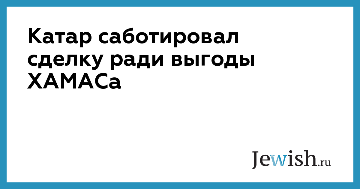 Однако, как сообщают источники, израильские переговорщики «особо не продвигали интересы заложников», относясь к перспективе заключения сделки несколько безразлично. Доха также активно выступала за отклонение этого предложения, заявив, что позднее ХАМАС может настоять на «более выгодных для него условиях».