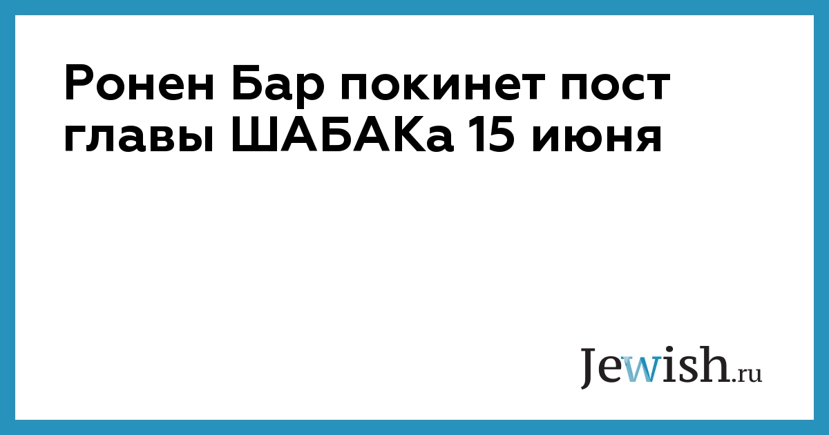 Глава Общей службы безопасности Израиля (ШАБАК) Ронен Бар объявил, что уйдет со своего поста 15 июня, «после 35 лет службы», признав личную ответственность за неспособность службы предотвратить нападение ХАМАСа 7 октября 2023 года.