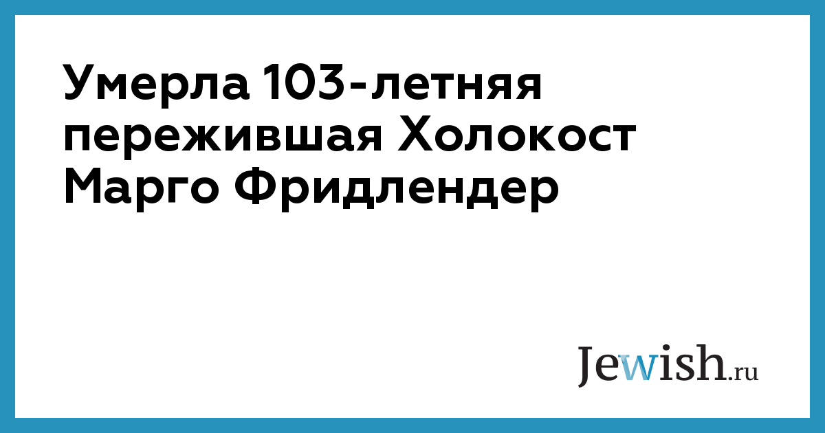 Умерла 103-летняя пережившая Холокост Марго Фридлендер