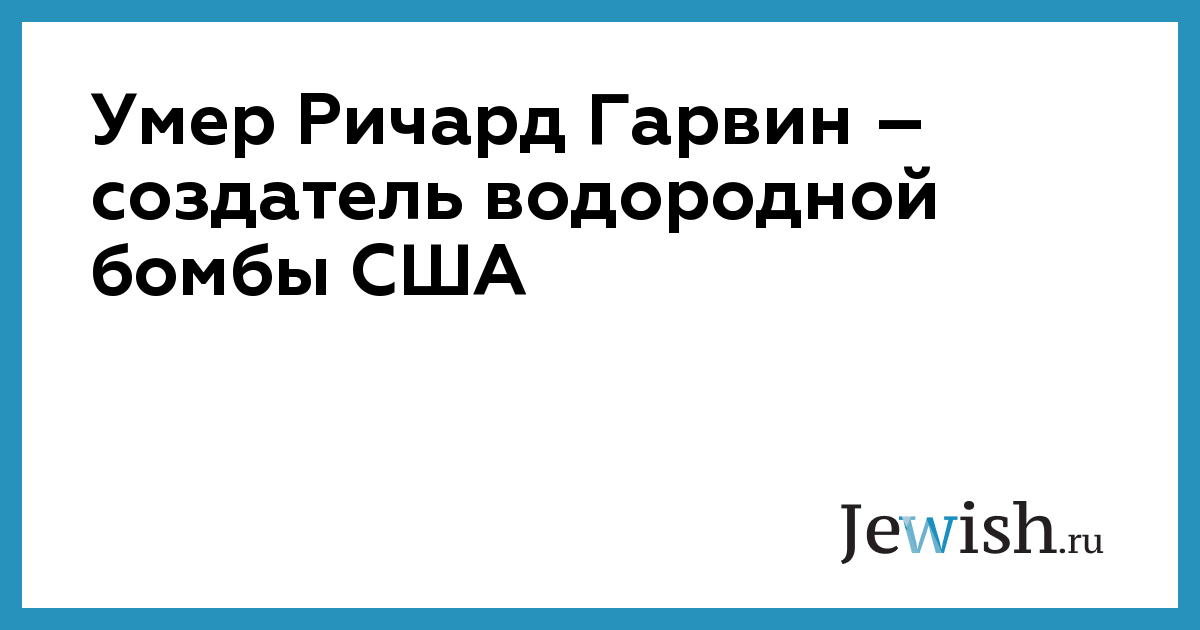 На 98-м году жизни скончался физик Ричард Лоуренс Гарвин – один из создателей американской водородной бомбы. Об этом сообщила газета The New York Times со ссылкой на сына ученого.