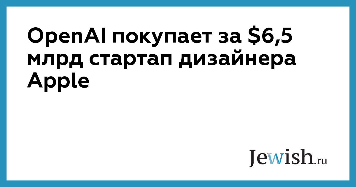 Компания OpenAI, разработчик чат-бота ChatGPT, приобретает за $6,5 млрд io стартап LoveFrom, принадлежащий бывшему топ-менеджеру Apple и дизайнеру iPhone Джони Айву. Об этом сообщает издание Calcalist со ссылкой на заявление генерального директора OpenAI Сэма Олтмана.