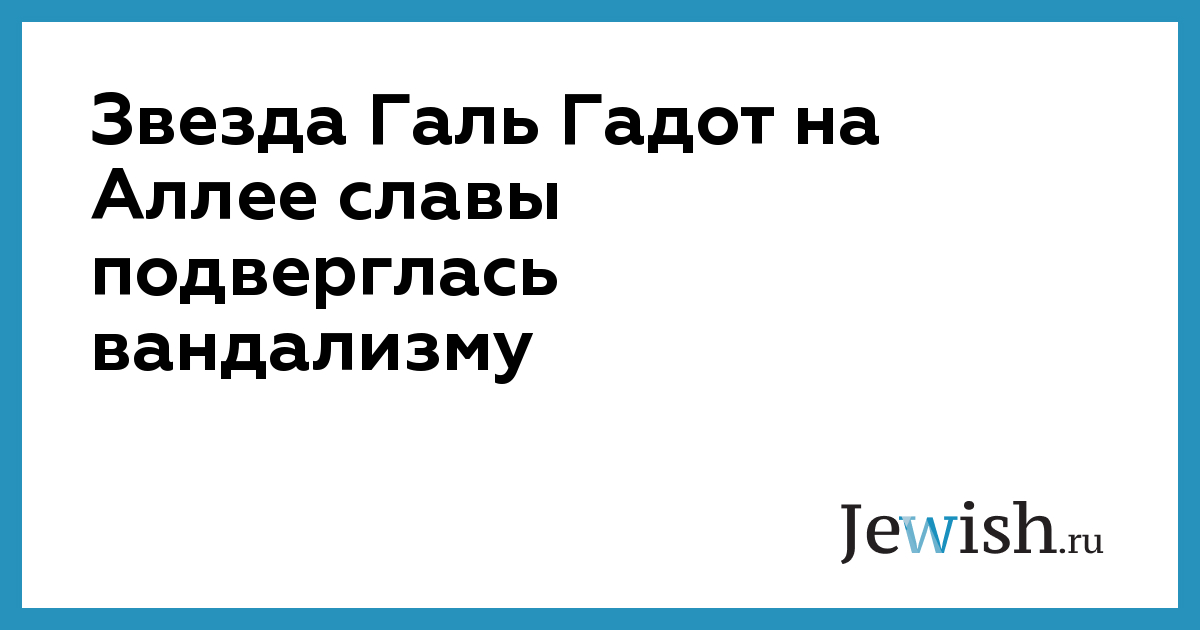 На голливудской Аллее славы неизвестный нанес маркером оскорбительные и антиизраильские надписи на звезду израильской актрисе Галь Гадот, сообщает The Times of Israel. Вандалы назвали Гадот «убийцей детей» и изменили ее фамилию на «Гринстейн», которую родители Гадот сменили еще до рождения Галь. В центр звезды была прикреплена наклейка с изображением детей в оптическом прицеле и надписью: «Израильские снайперы целятся в детей». Надписи и наклейка были удалены неравнодушными прохожими, сообщает издание.