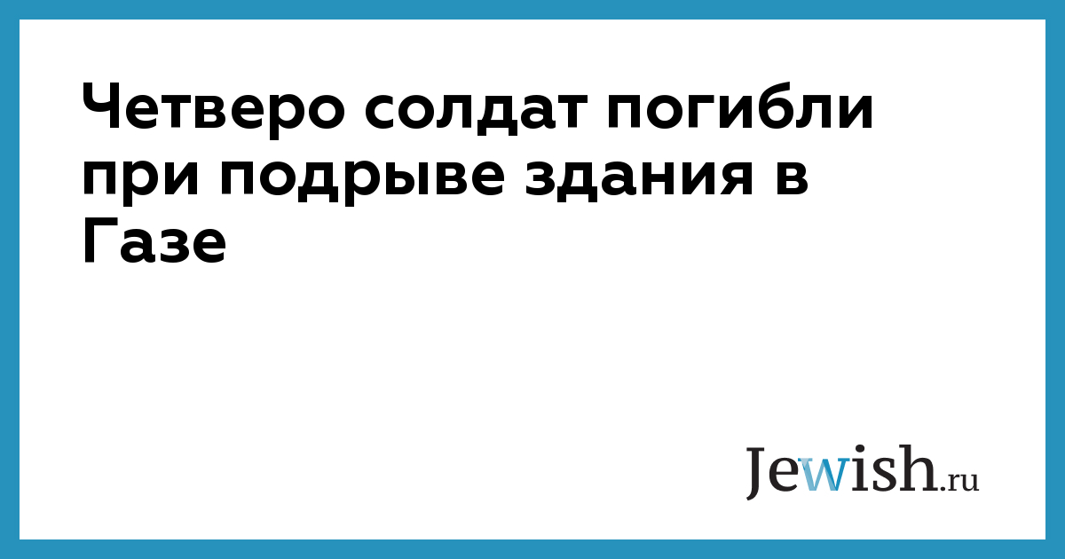 В пятницу, 6 июня, в результате взрыва заминированного здания в Хан-Юнисе, расположенном на юге сектора Газа, погибли четверо израильских военнослужащих. Еще пятеро получили серьезные ранения. В ЦАХАЛе сообщили, что тела двух погибших военнослужащих – 33-летнего резервиста Чэнь Гросса и 19-летнего Йоава Равера – были опознаны. Имена еще двоих погибших будут названы после процедуры идентификации. По данным ЦАХАЛа, отряд обследовал объект на наличие террористической инфраструктуры, включая туннели, когда в результате взрыва здание обрушилось.
