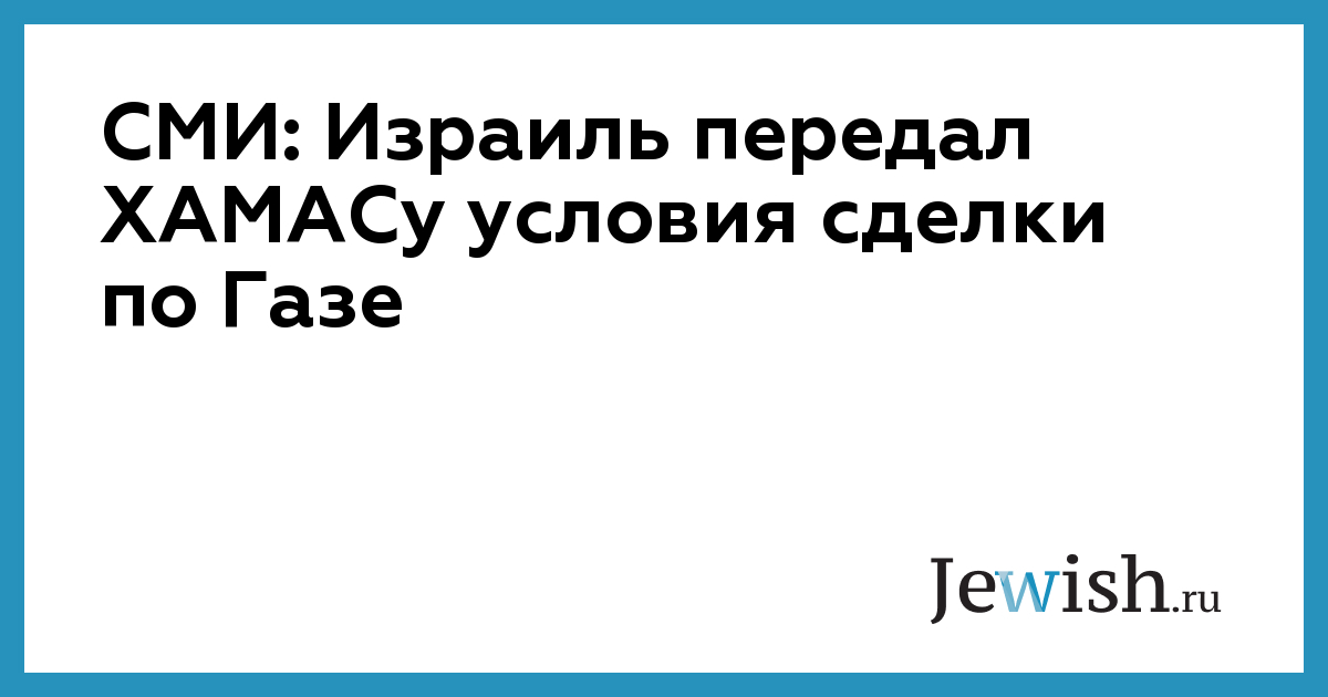 СМИ: Израиль передал ХАМАСу условия сделки по Газе