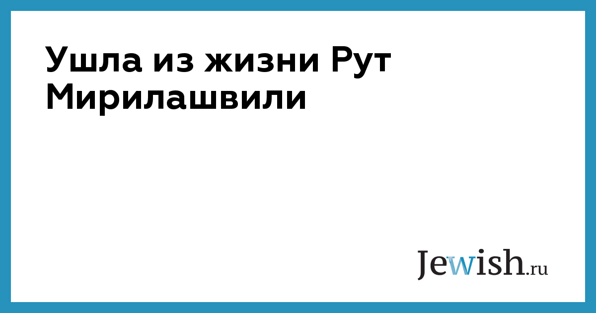 Редакция Jewish.ru также выражает Михаилу Михайловичу и Вячеславу Михайловичу свои соболезнования. Да упокоится душа Рут Мирилашвили вместе с душами других праведников и праведниц.