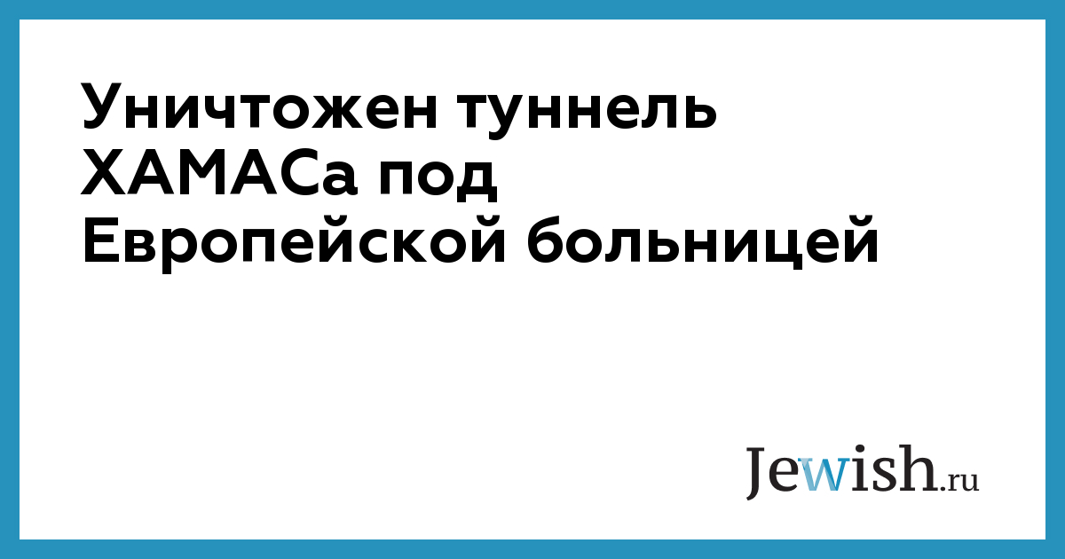 Уничтожен туннель ХАМАСа под Европейской больницей