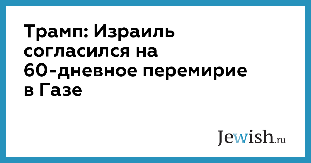 Трамп: Израиль согласился на 60-дневное перемирие в Газе