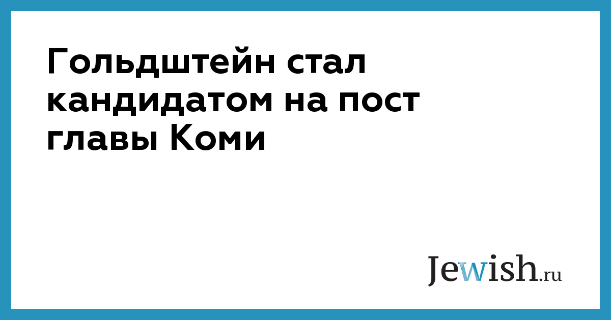 Временно исполняющий обязанности главы Республики Коми Ростислав Гольдштейн зарегистрирован кандидатом на выборах главы региона, сообщает местный республиканский портал «Про город». Помимо Гольдштейна, избирком республики зарегистрировал в качестве кандидатов Татьяну Саладину от партии «Справедливая Россия – За правду», Сергея Каргинова от ЛДПР, Степана Соловьёва от «Зелёной альтернативы» и Александра Касьяненко от партии «Коммунисты России». Выборы главы Республики Коми пройдут с 12 по 14 сентября этого года.