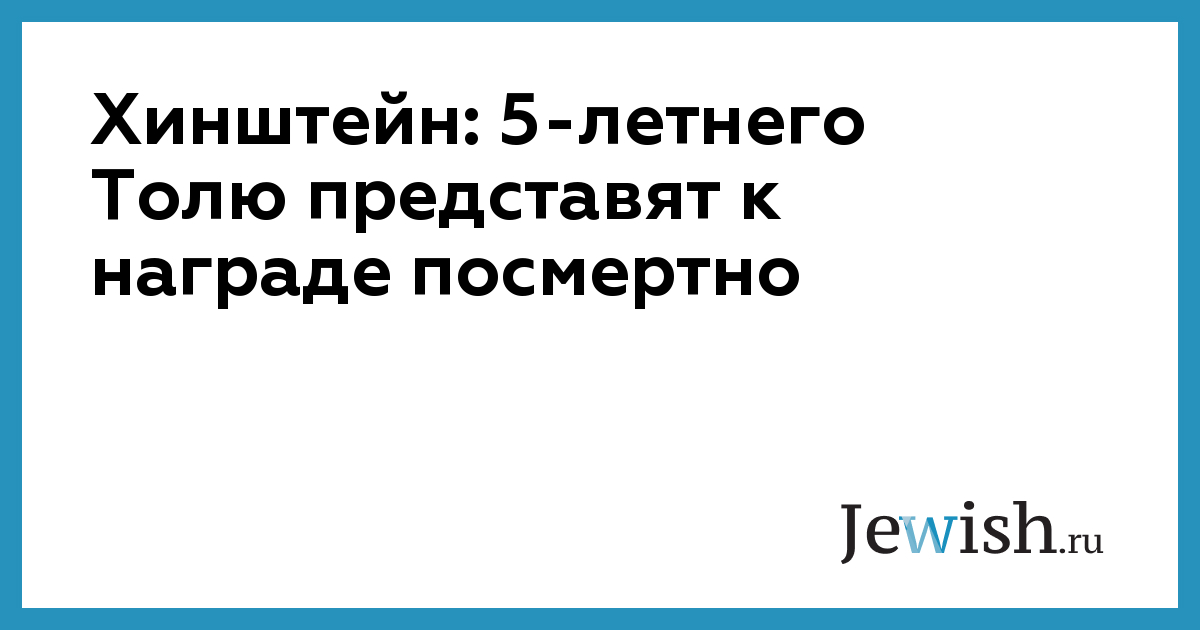 Хинштейн: 5-летнего Толю представят к награде посмертно
