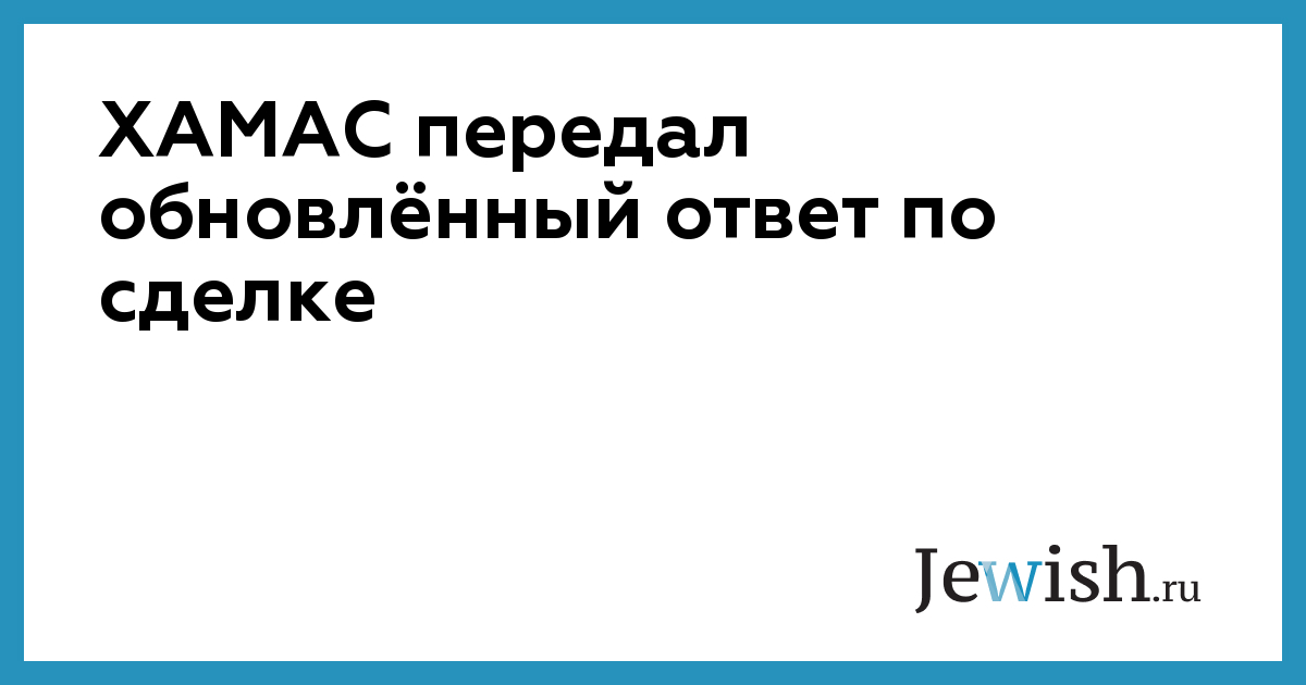 В ночь на четверг, 24 июля, группировка ХАМАС передала документ по обменной сделке, скорректированный по просьбе посредников, вчера отказавшихся принимать первую версию. Об этом со ссылкой на Telegram группировки сообщает France 24. Израильские источники подтвердили, что Иерусалим уже изучает ответ ХАМАСа.
