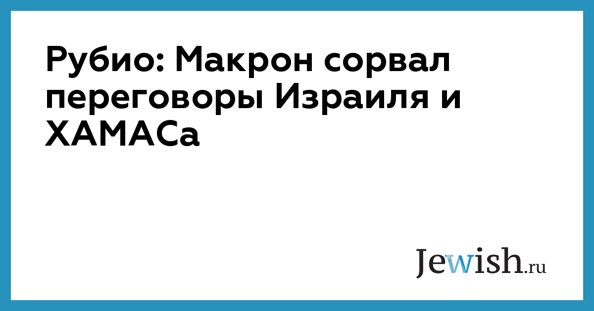 Рубио: Макрон сорвал переговоры Израиля и ХАМАСа