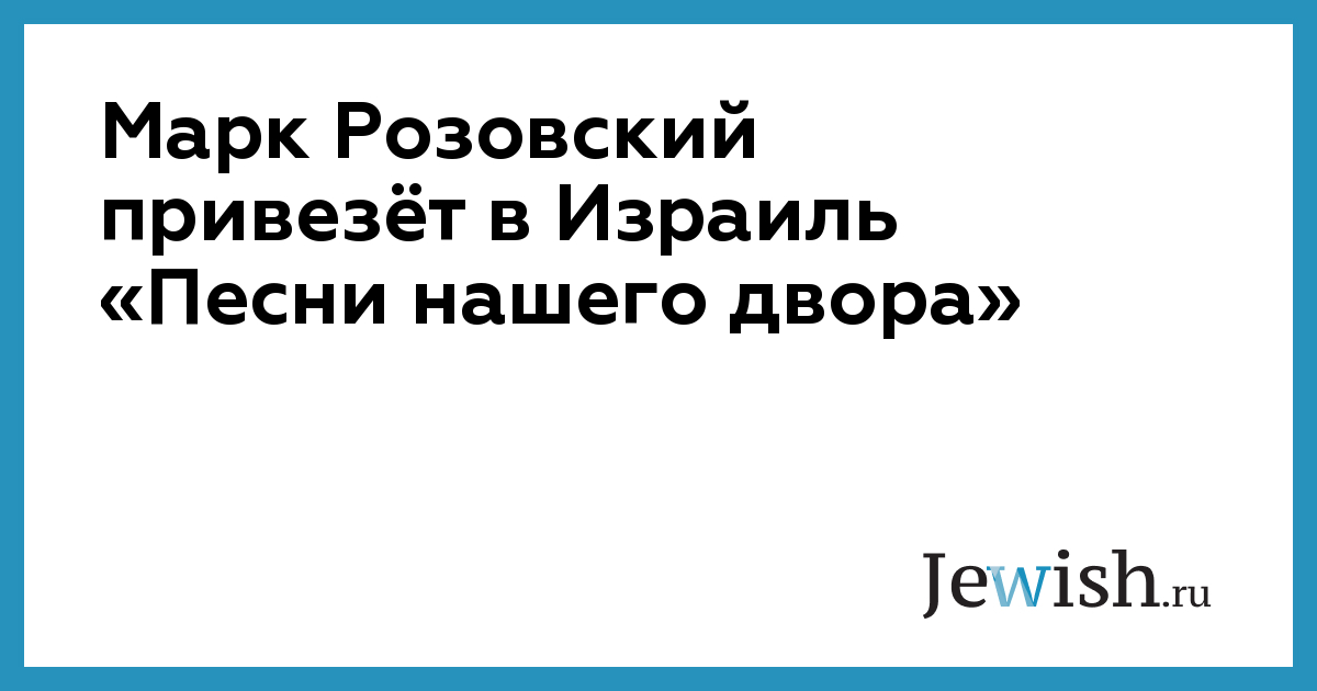 Марк Розовский привезёт в Израиль «Песни нашего двора»