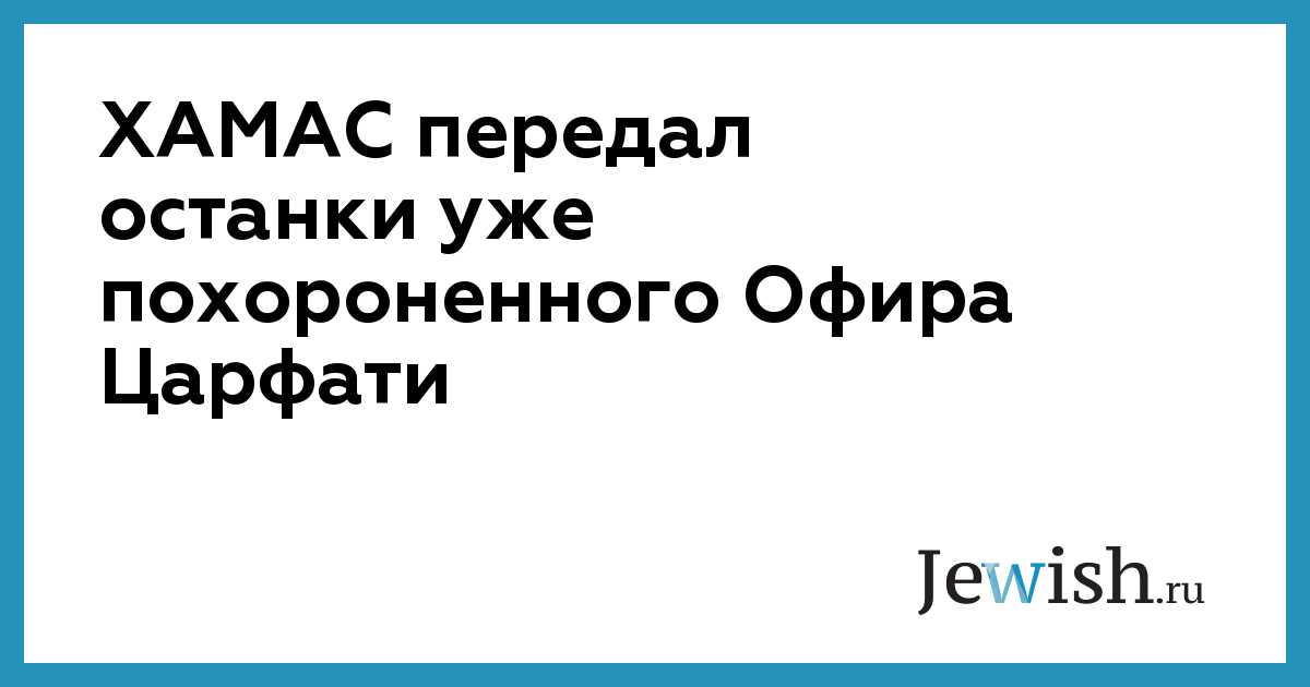 Останки, вчера вечером переданные террористической группировкой ХАМАС Израилю, принадлежат 27-летнему Офиру Царфати, тело которого было возвращено в Израиль почти два года назад. Об этом со ссылкой на заявление ЦАХАЛа сообщает Times of Israel.