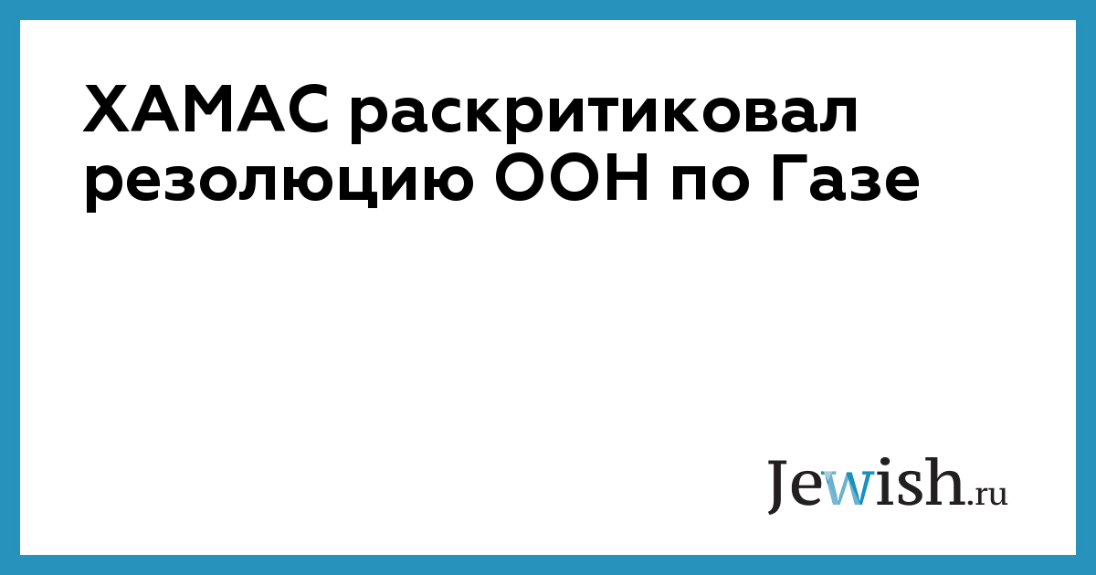 ХАМАС раскритиковал резолюцию ООН по Газе