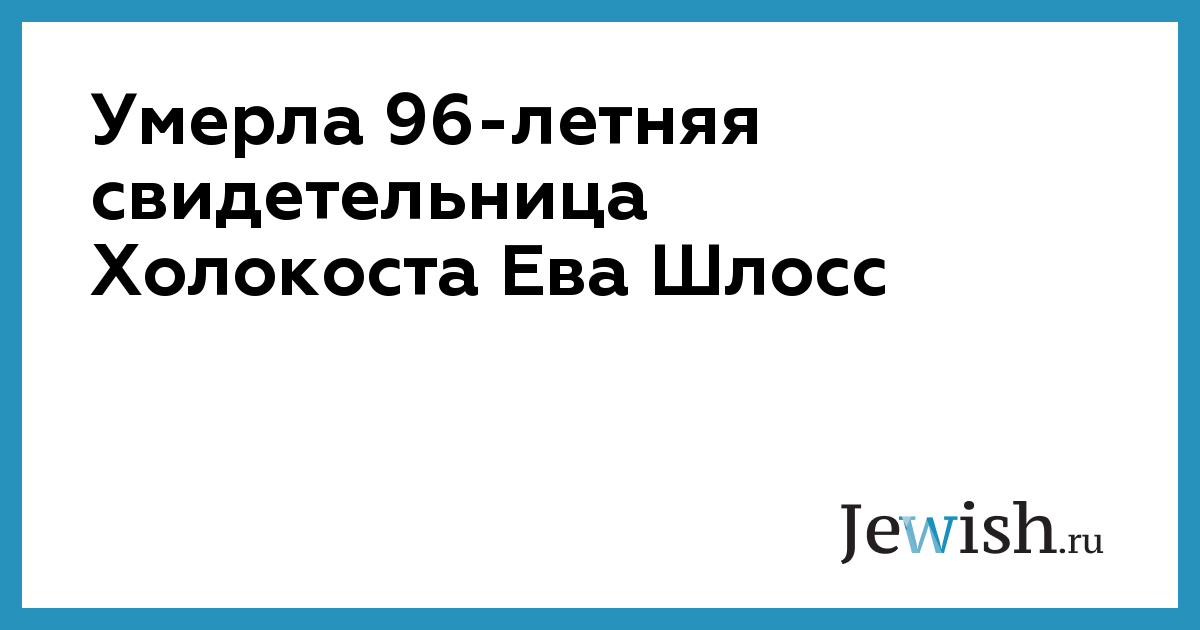 Умерла 96-летняя свидетельница Холокоста Ева Шлосс