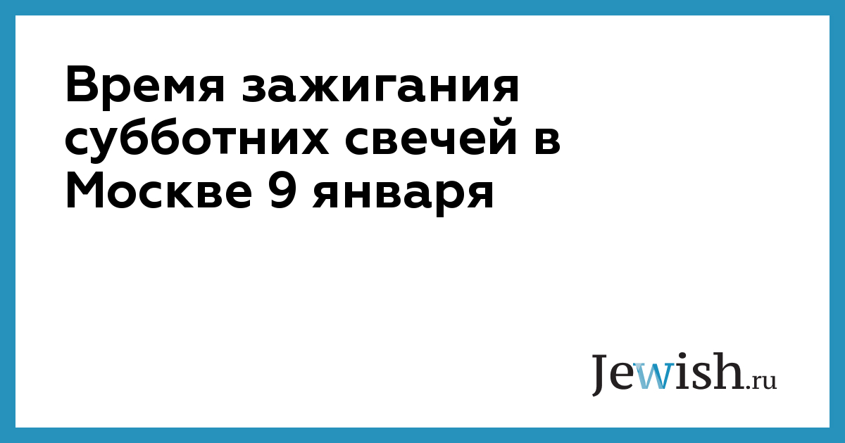 Время зажигания субботних свечей в Москве 9 января