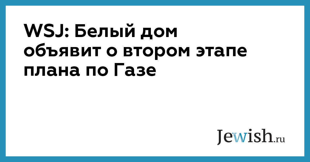 WSJ: Белый дом объявит о втором этапе плана по Газе