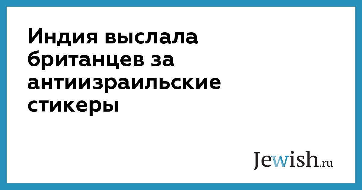 Власти индийского штата Раджастхан обязали двоих граждан Британии немедленно покинуть страну за нарушение визового режима. Как сообщает Times of India, 36-летние Льюис Габриэль Ди и Ануэши Эмма Кристин превратили свой отпуск в Индии в антиизраильский перформанс, расклеивая в городе Пушкар призывы к бойкоту Израиля. Активистам вручили предписание Leave India, обязывающее их вылететь домой в кратчайшие сроки.