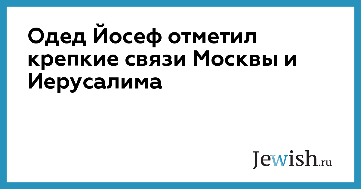 Одед Йосеф отметил крепкие связи Москвы и Иерусалима
