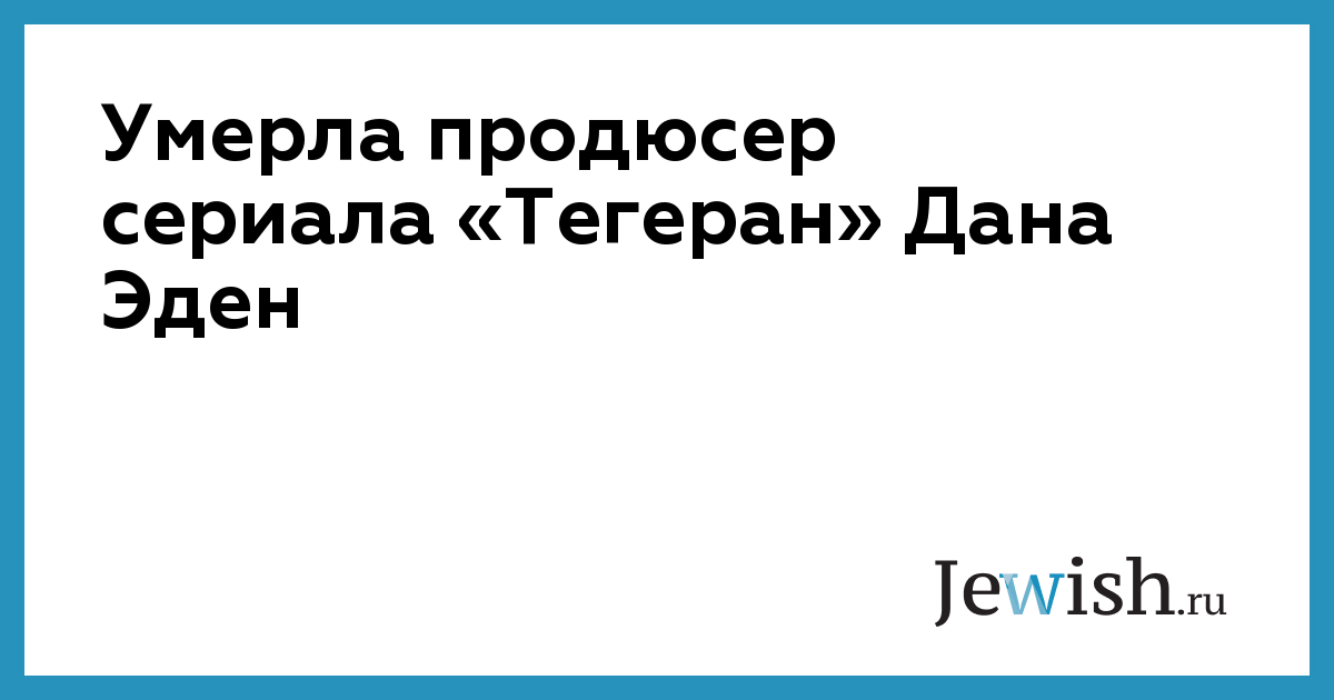 Умерла продюсер сериала «Тегеран» Дана Эден