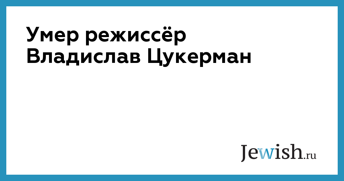 Умер режиссёр Владислав Цукерман