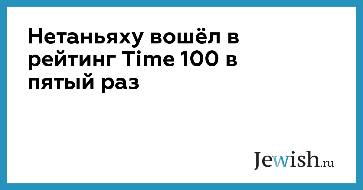 Премьер-министр Израиля Биньямин Нетаньяху включен в ежегодный список 100 самых влиятельных людей мира по версии журнала Time. Для главы израильского правительства это стало уже пятым попаданием в престижный рейтинг за его политическую карьеру.