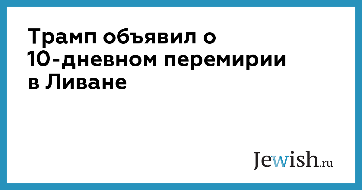 Президент США Дональд Трамп объявил о достижении соглашения по введению 10-дневного перемирия между Израилем и Ливаном, которое должно вступить в силу в полночь по израильскому времени. В своем заявлении Трамп отметил, что соглашение стало результатом успешных контактов с премьер-министром Израиля Биньямином Нетаньяху и президентом Ливана Джозефом Ауном.