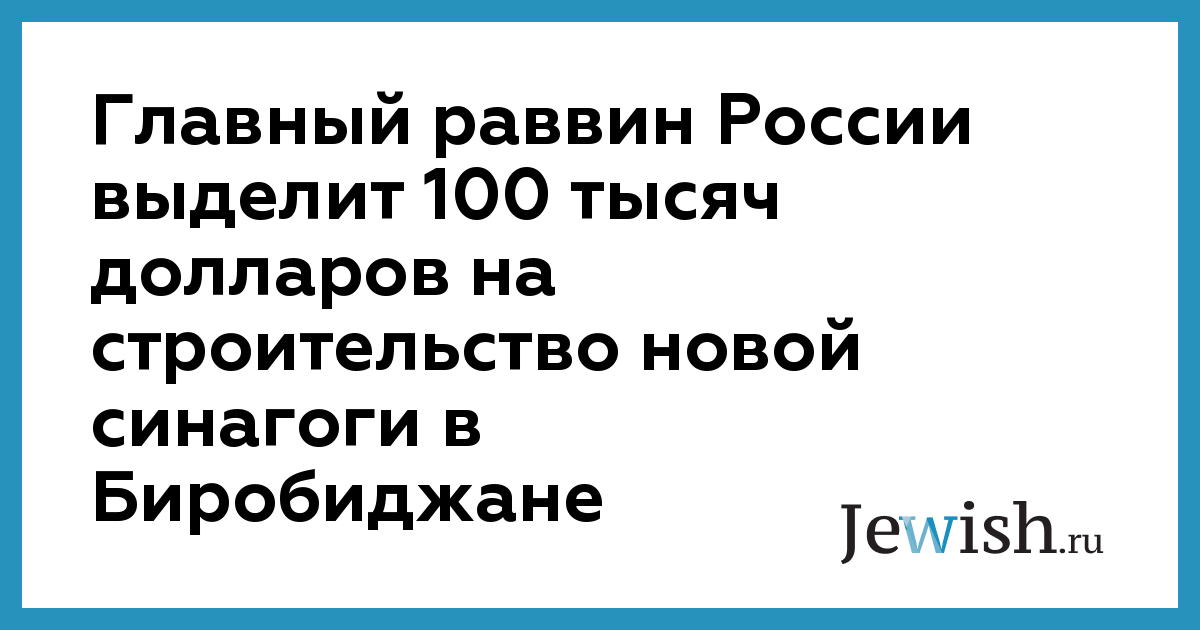 Главный раввин России выделит 100 тысяч долларов на строительство новой синагоги в Биробиджане